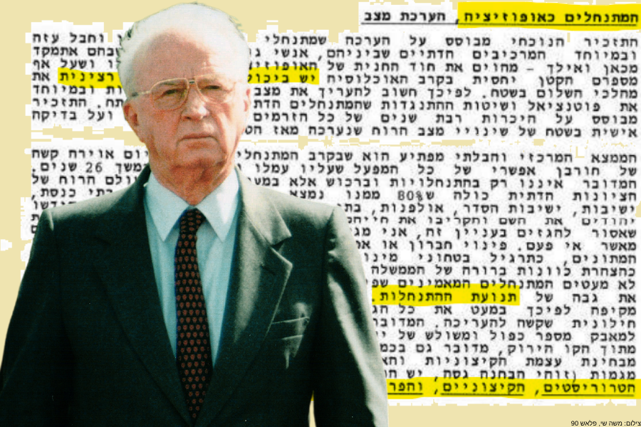 מסמכים שהגיעו לידי ערוץ 20 ומתפרסמים כאן לראשונה חושפים את היחס הקשה, הזרות, הפחד והתיעוב מפני ציבור המתנחלים ותומכיהם בימין הישראלי. מדובר בדיונים בתוך המעגל הפנימי של ראש הממשלה רבין, שנכחו בהם אנשים כמו איתן הבר, אבי בניהו ועמוס גלעד, בימים שלפני יישום הנסיגה מעזה ויריחו במסגרת הסכמי אוסלו.